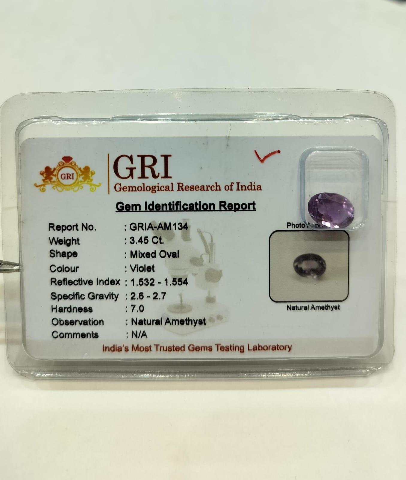 Natural Amethyst Stone Weight 3.45 Carat Mixed Oval Shape.