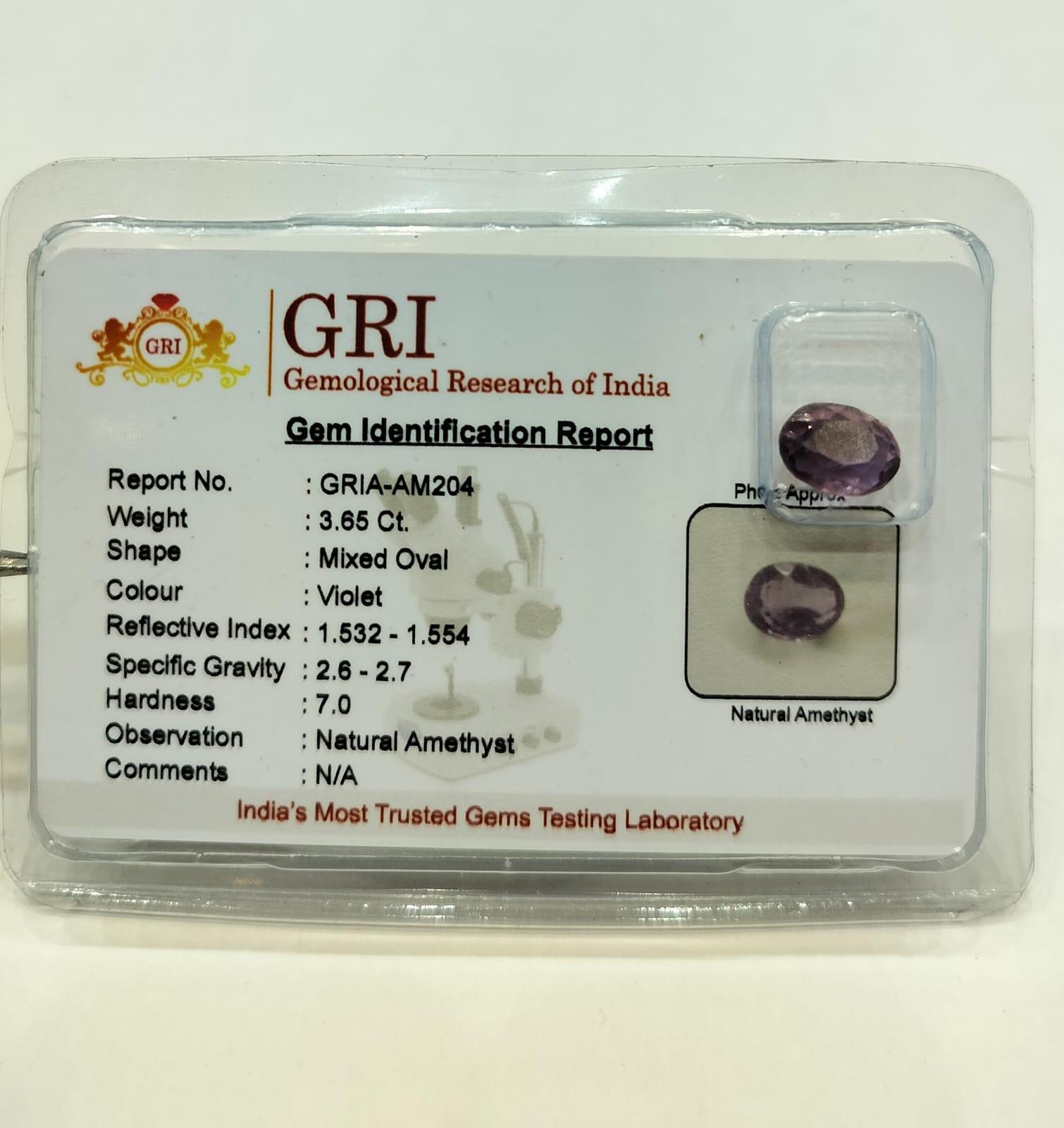 Natural Amethyst Stone Weight 3.65 Carat Mixed Oval Shape.