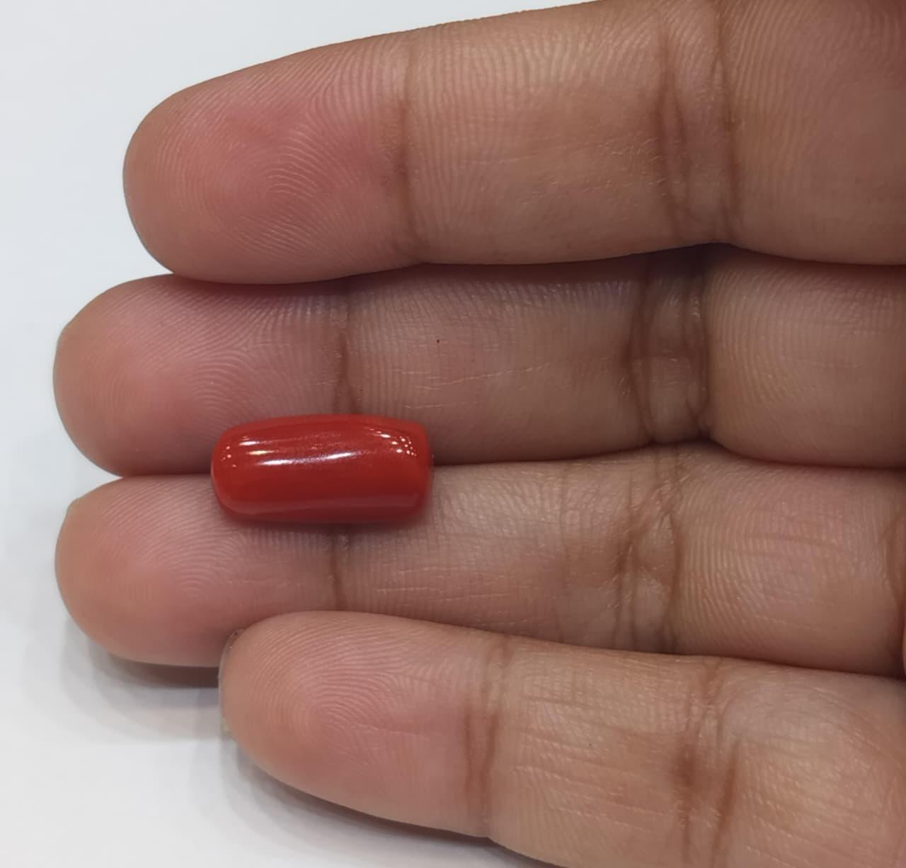 Natural Coral Stone Weight 5.35 Carat Capsule Shape.
