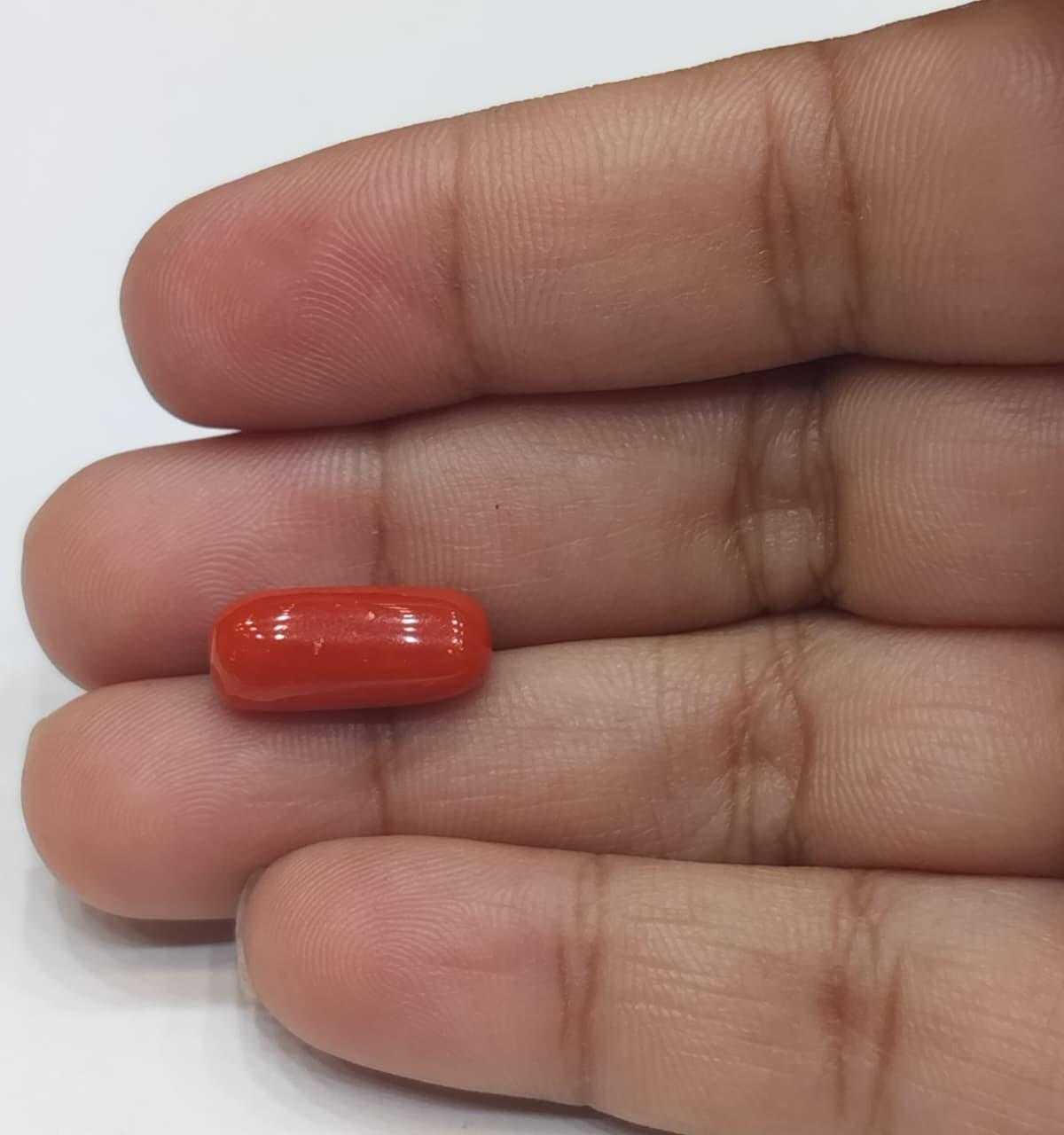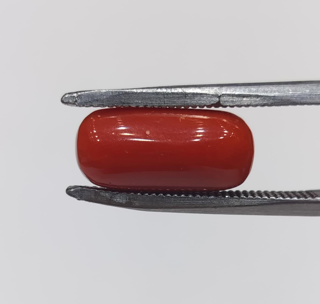 Natural Coral Stone Weight 6.27 Carat Capsule Shape.