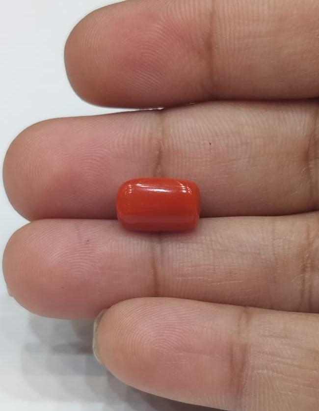 Natural Coral Stone Weight 3.74 Carat cylindricalShape.