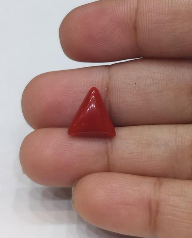 Natural Coral Stone Weight 3.39 Carat triangleShape.