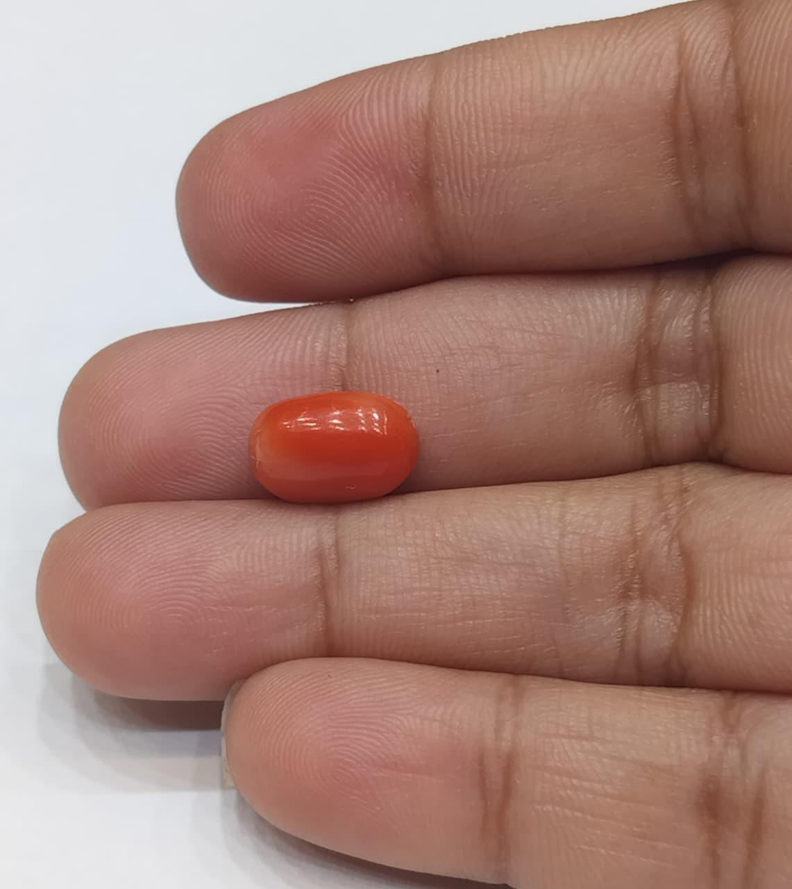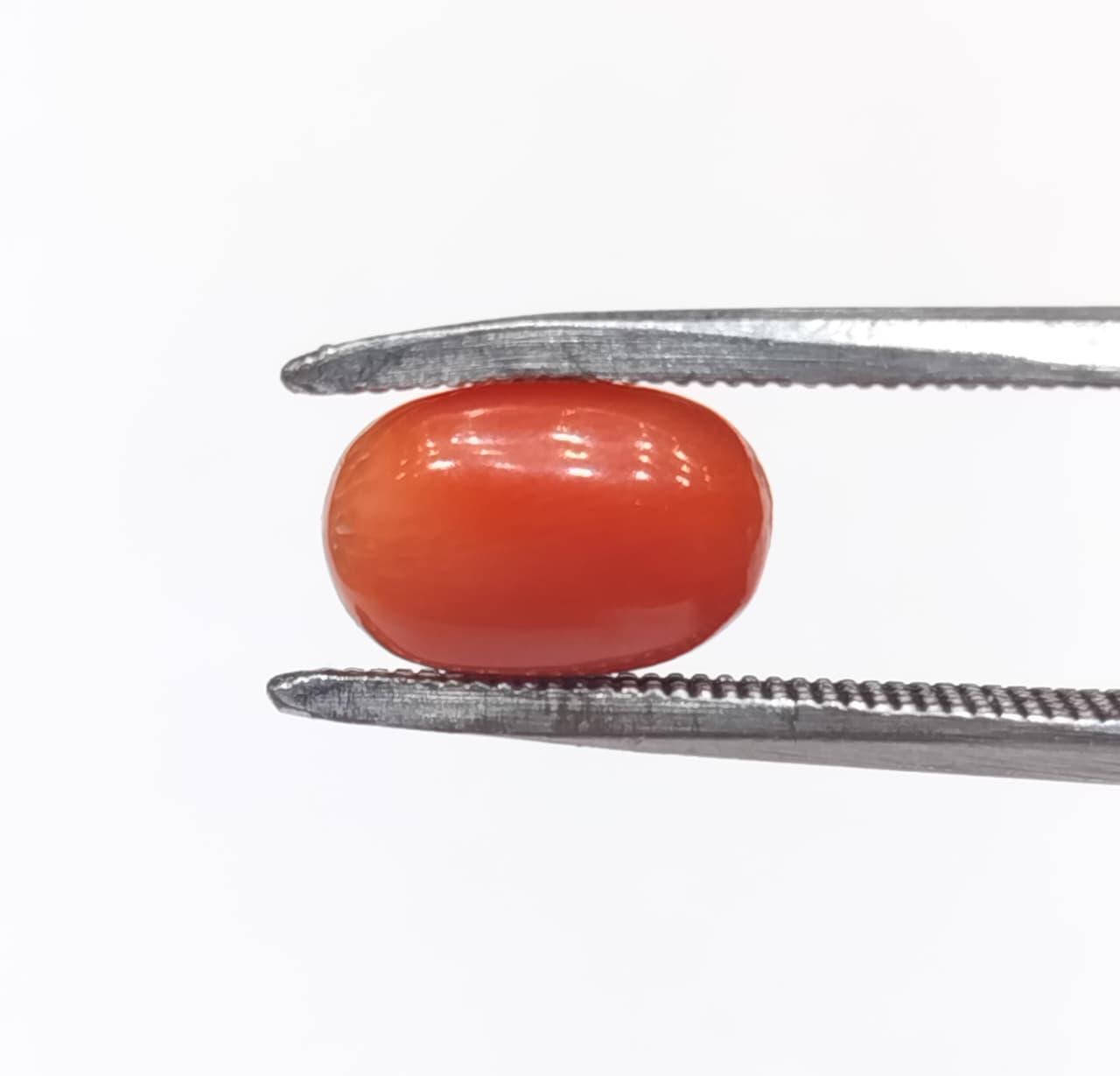 Natural Coral Stone Weight 3.27 Carat Oval Shape.