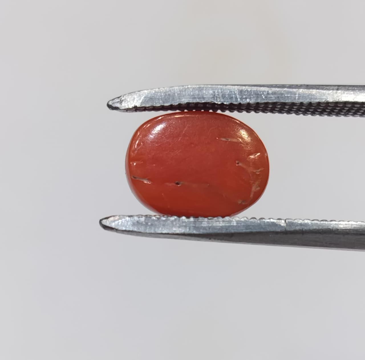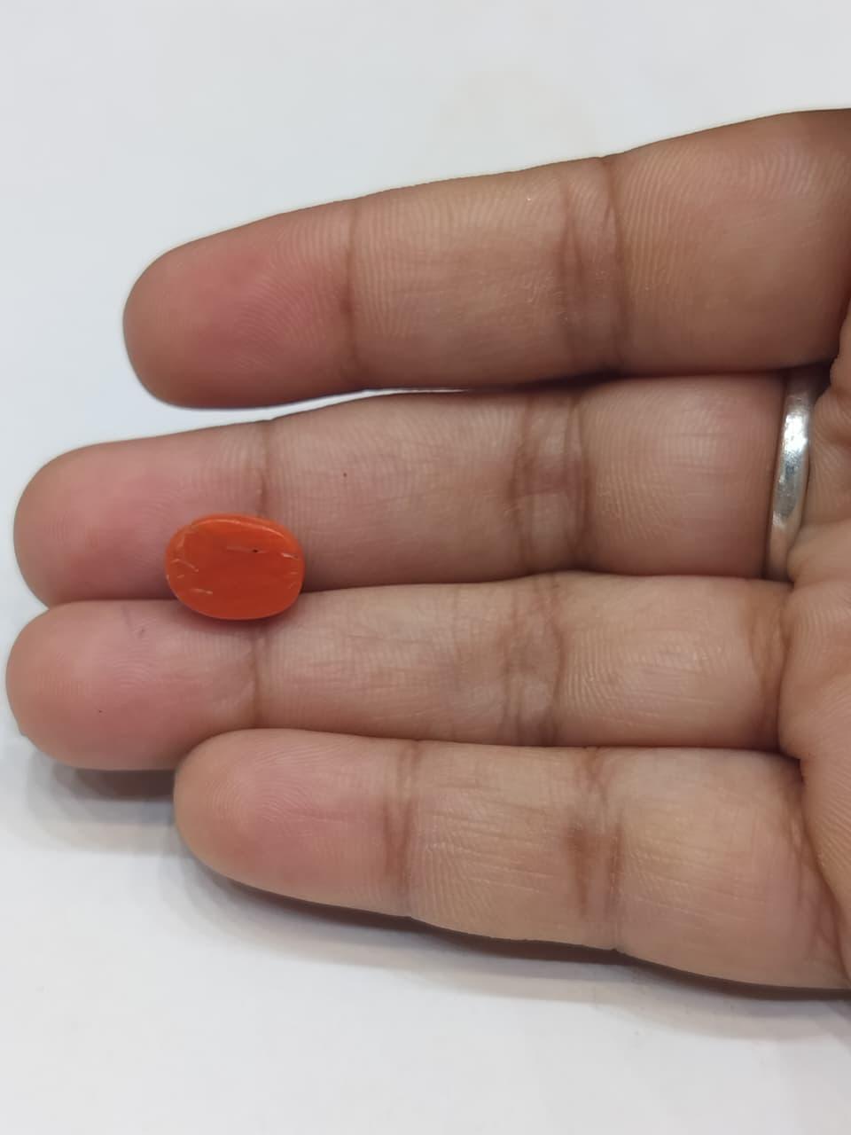 Natural Coral Stone Weight 3.94 Carat Oval Shape.