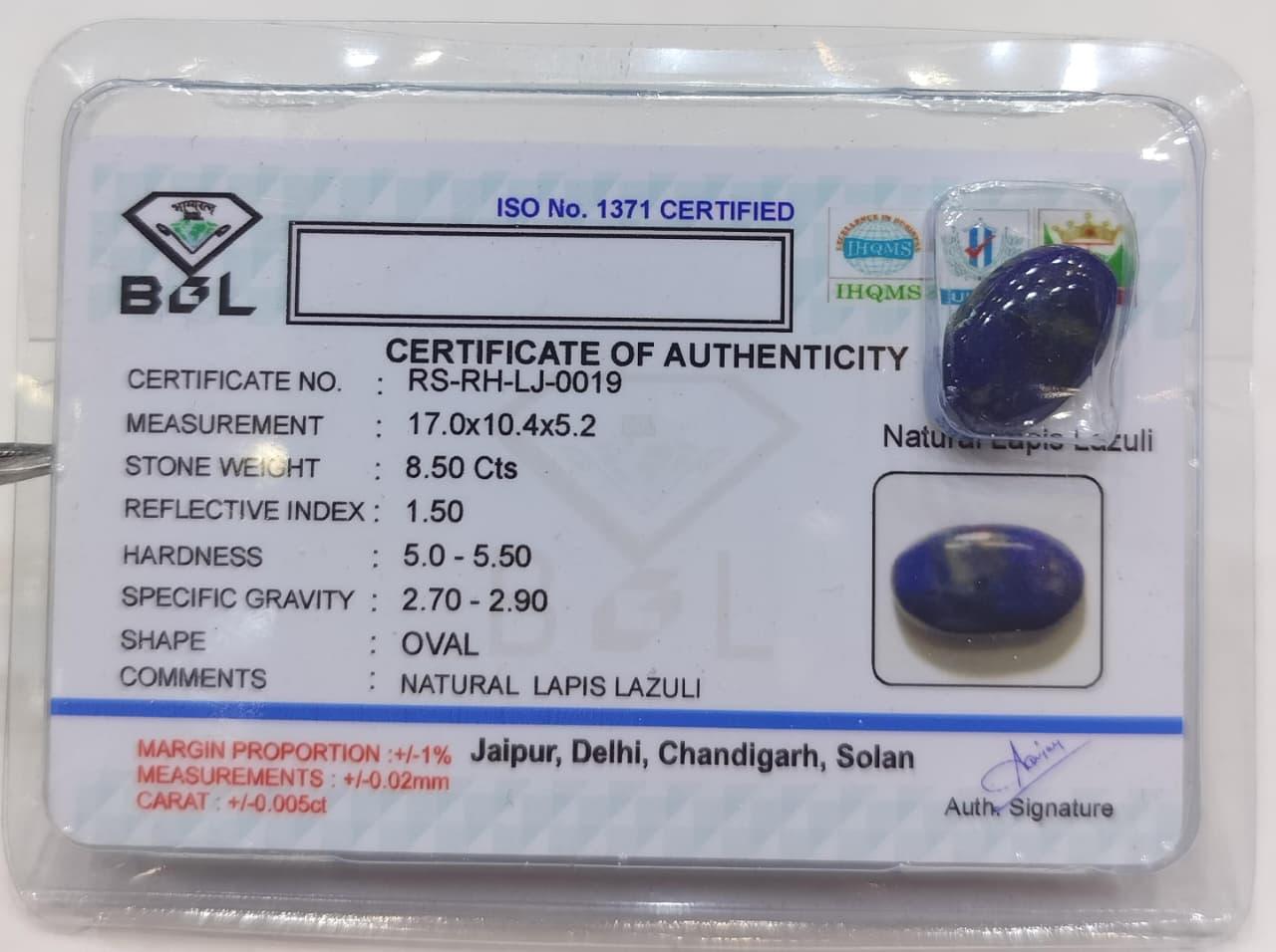 Natural Lapis Stone Weight 8.50 Carat Oval Shape.