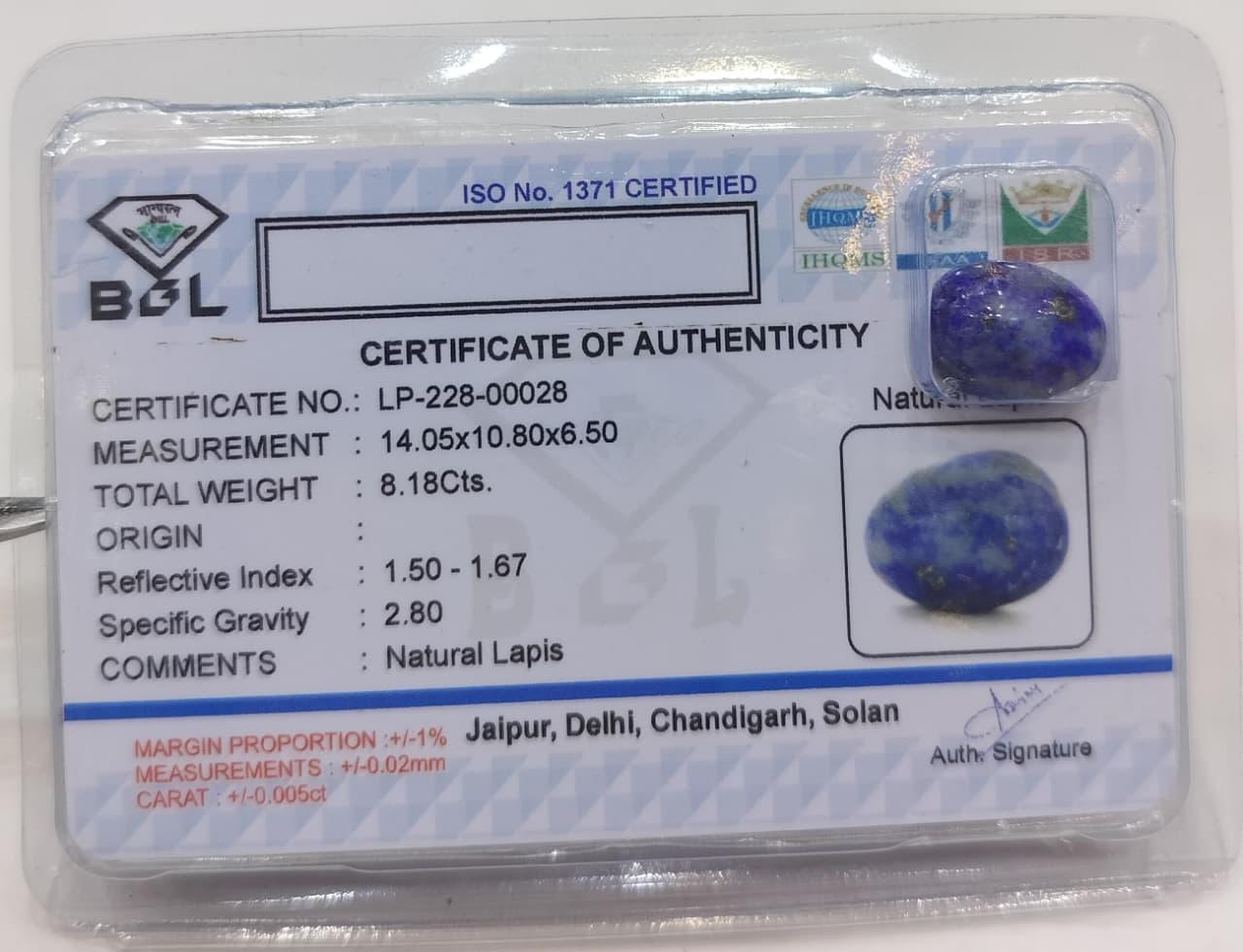 Natural Lapis Stone Weight 8.18 Carat Oval Shape.