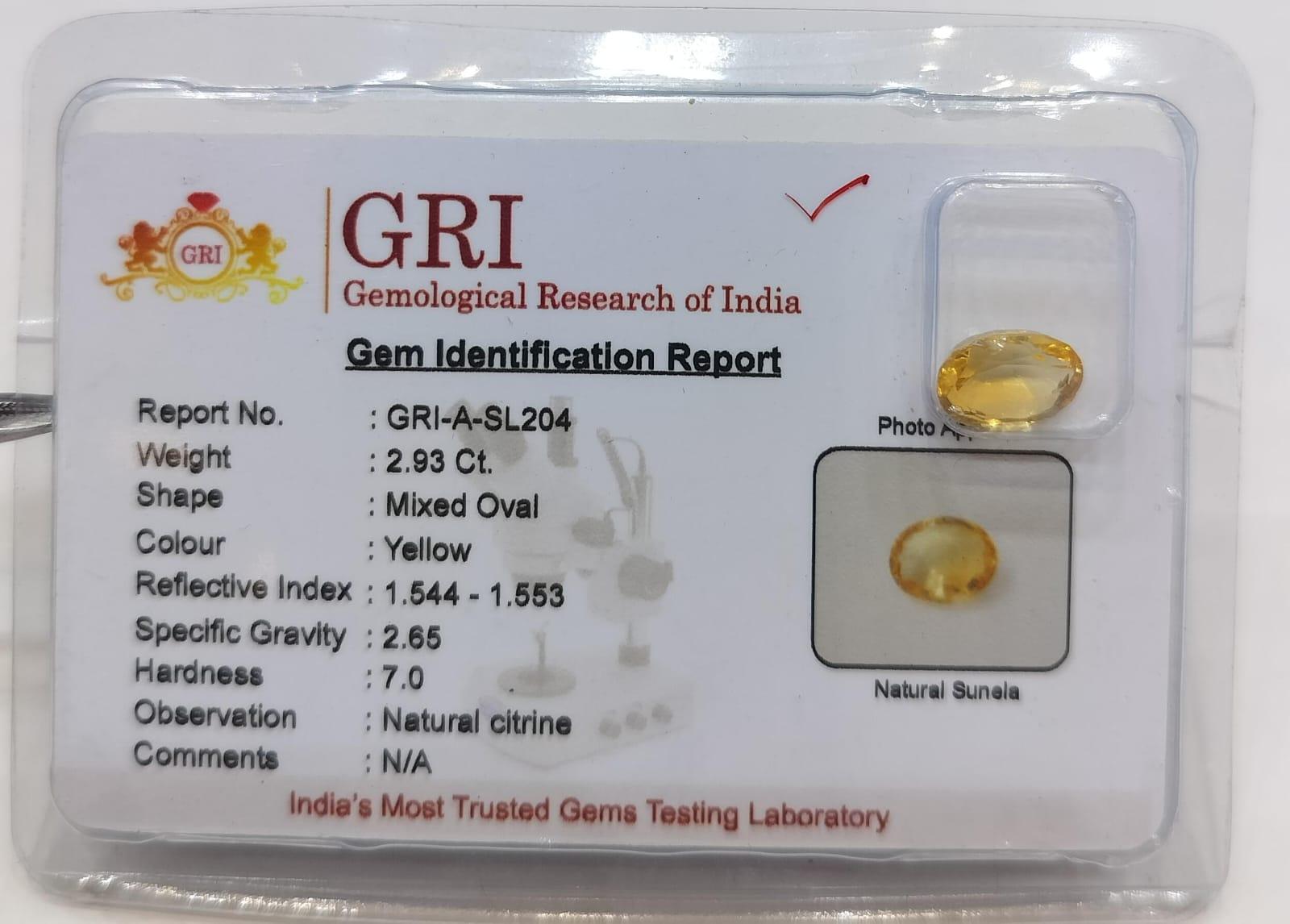 Natural Sunhela Stone Weight 2.93 Carat Mixed Oval Shape.