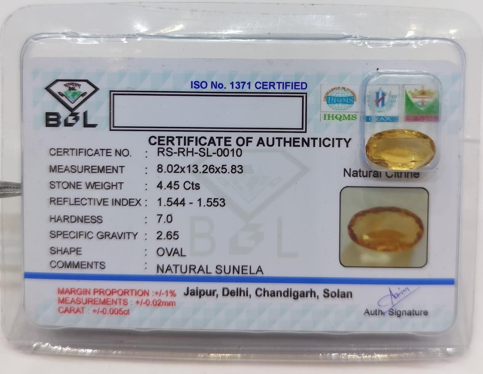 Natural Sunhela Stone Weight 4.45 Carat Oval Shape.