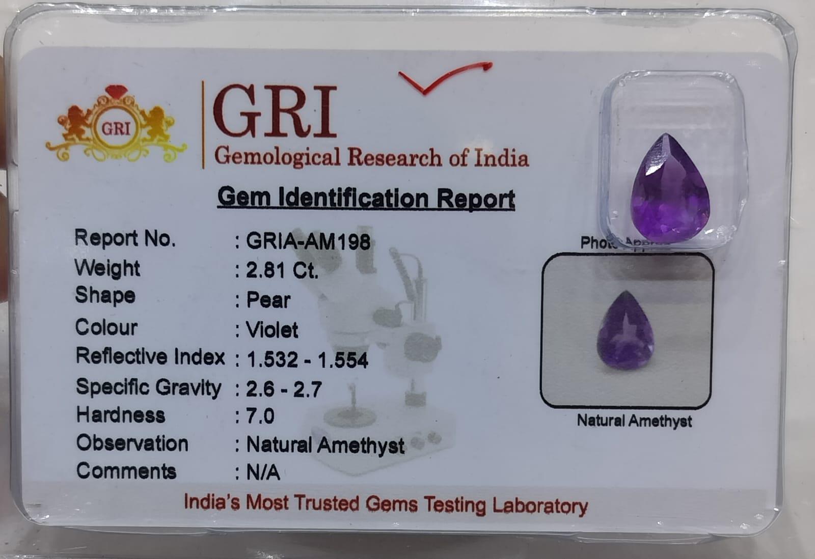 Natural Amethyst Stone Weight 2.81 Carat Pear Shape.
