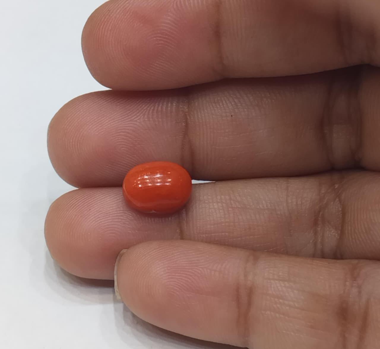 Natural Coral Stone Weight 3.00 Carat Oval Shape.