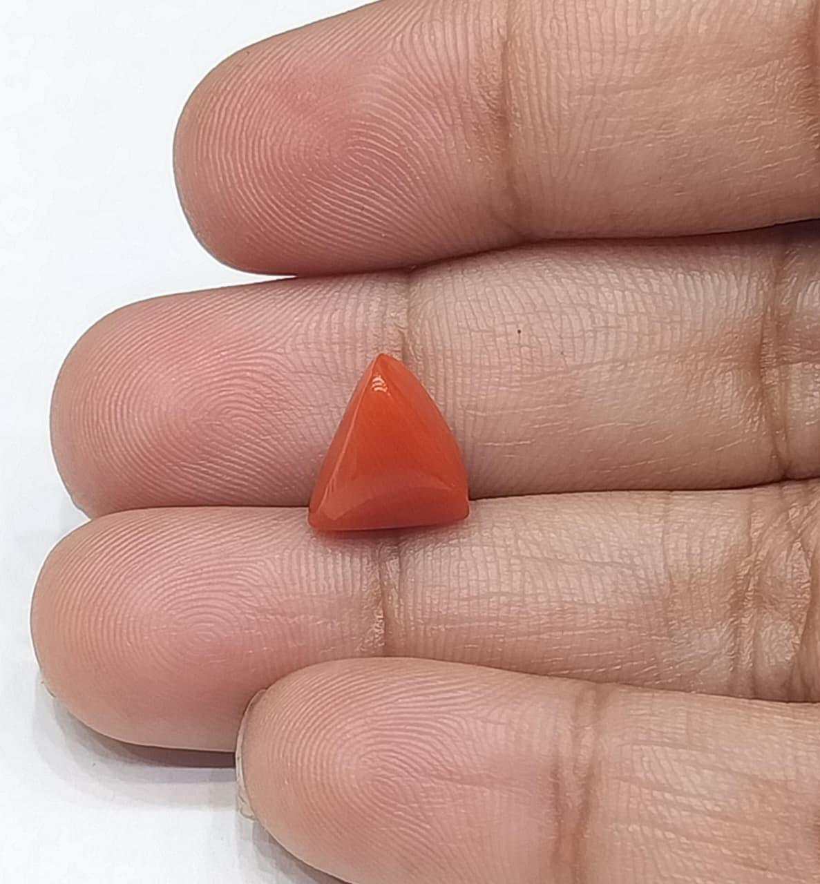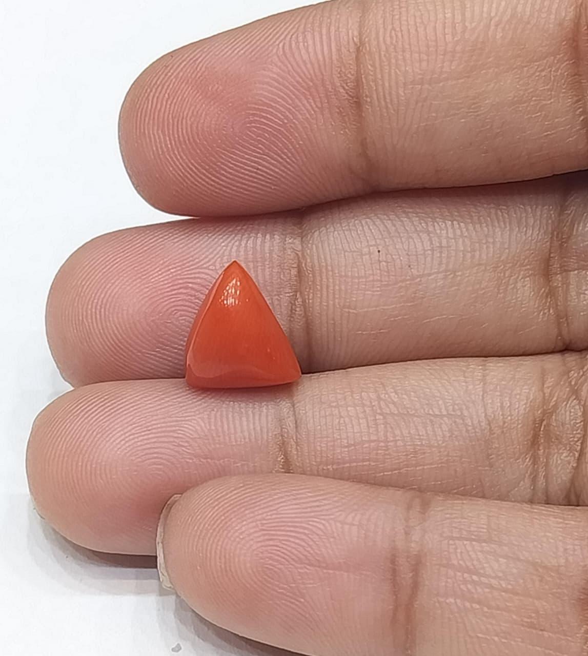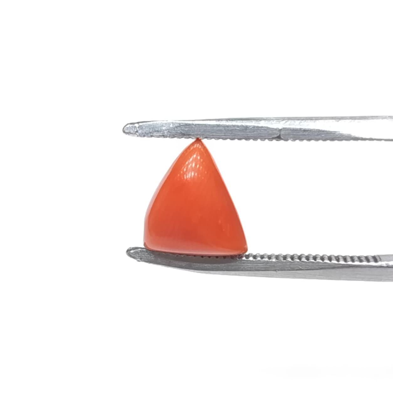 Natural Coral Stone Weight 3.68 Carat triangle Shape.