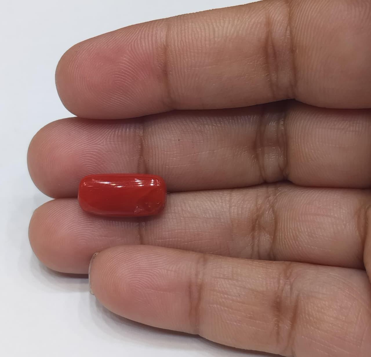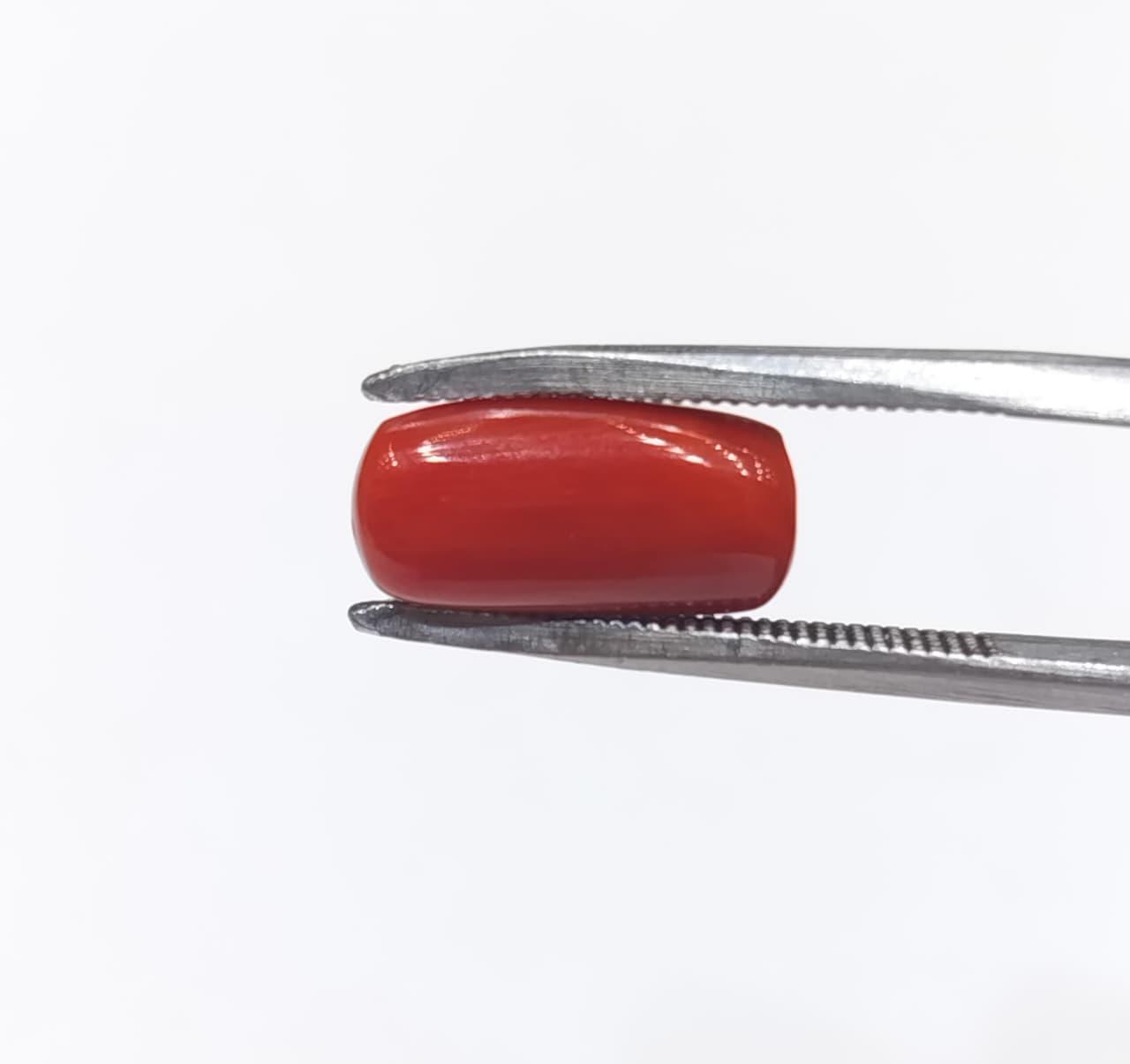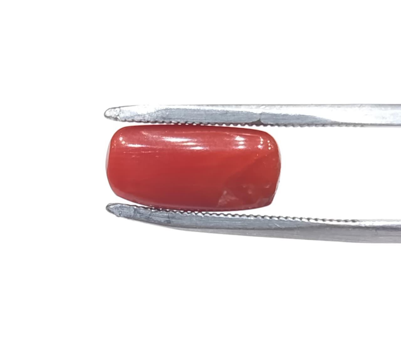Natural Coral Stone Weight 5.35 Carat Capsule Shape.