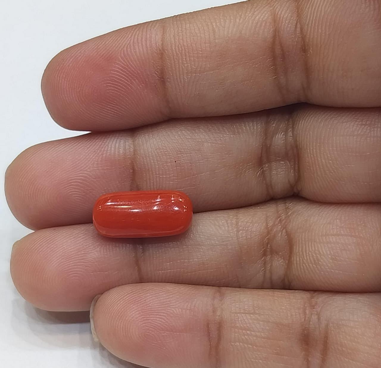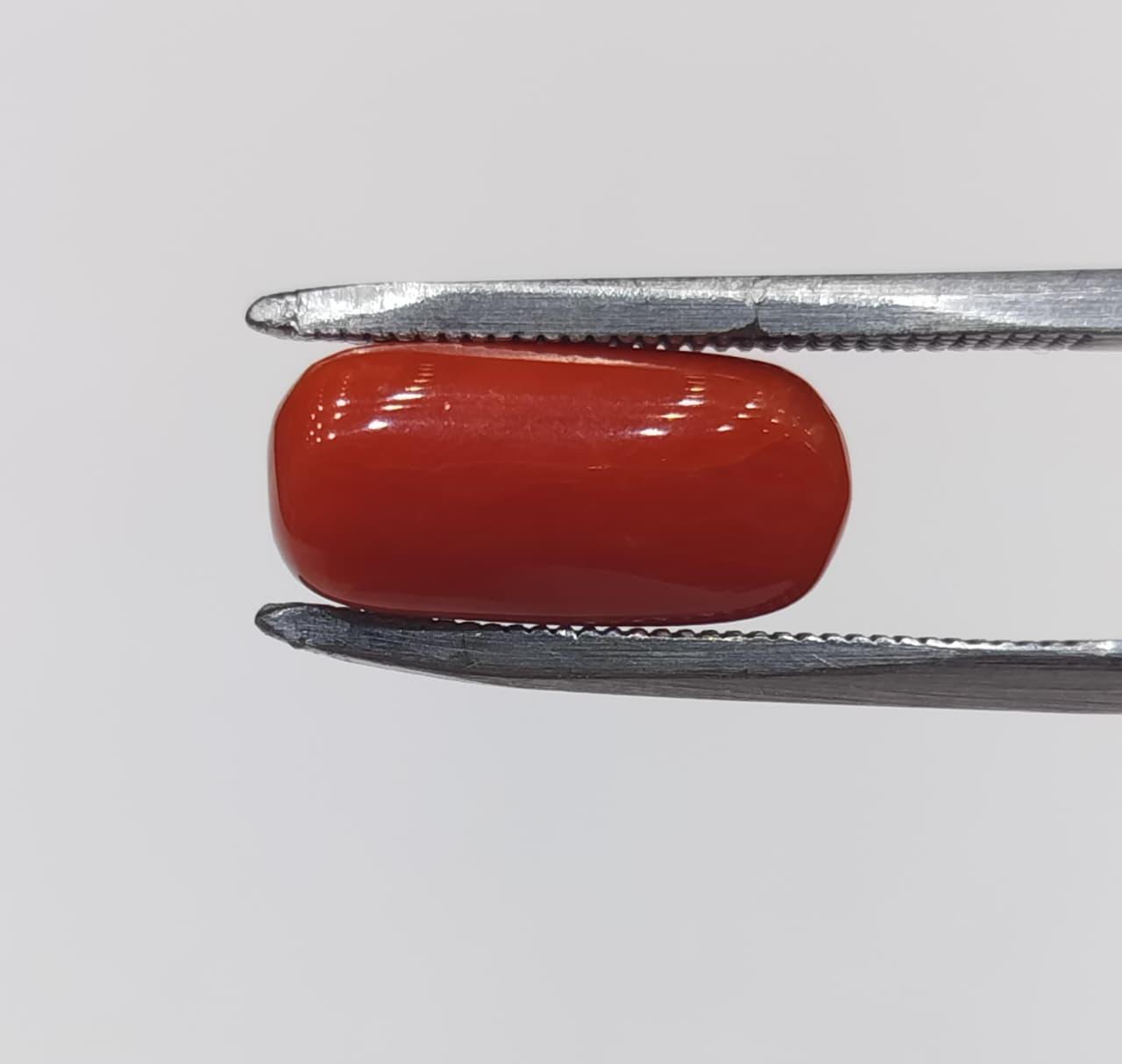 Natural Coral Stone Weight 6.27 Carat Capsule Shape.