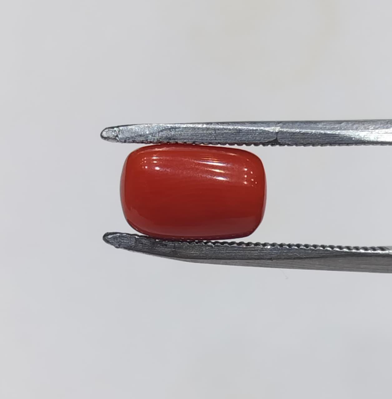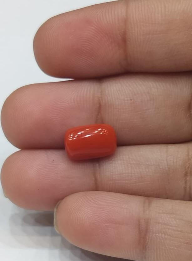 Natural Coral Stone Weight 3.74 Carat cylindricalShape.