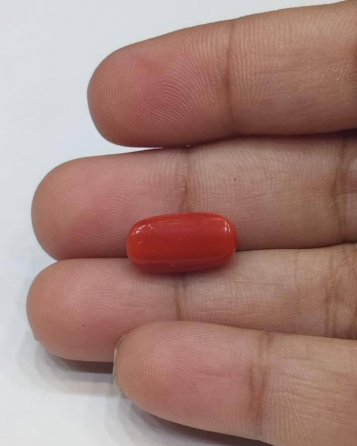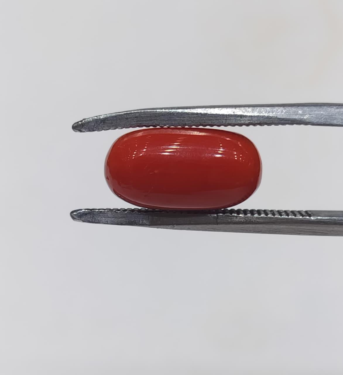 Natural Coral Stone Weight 5.70 Carat OvalShape.