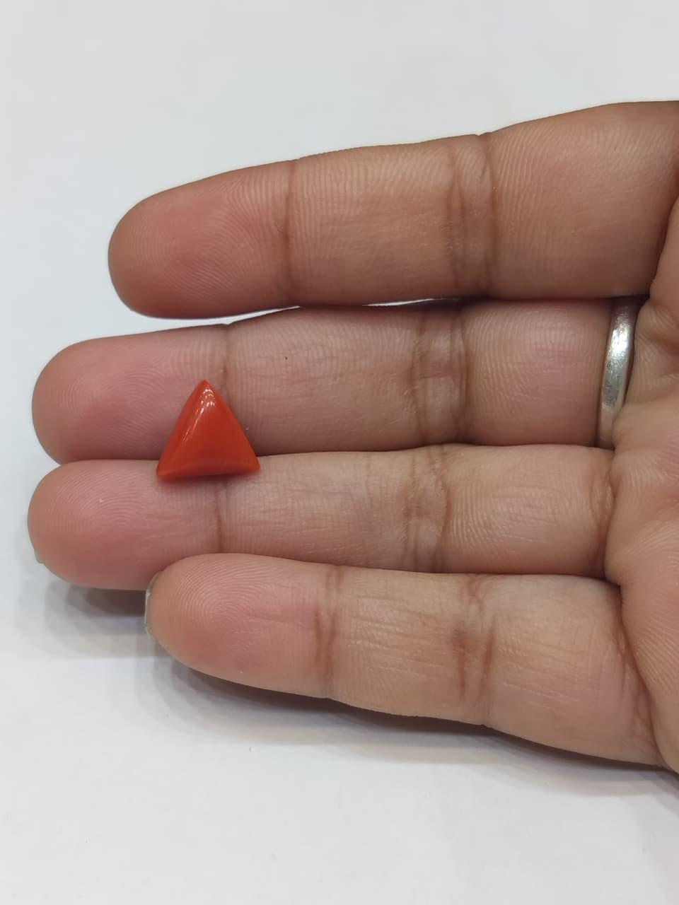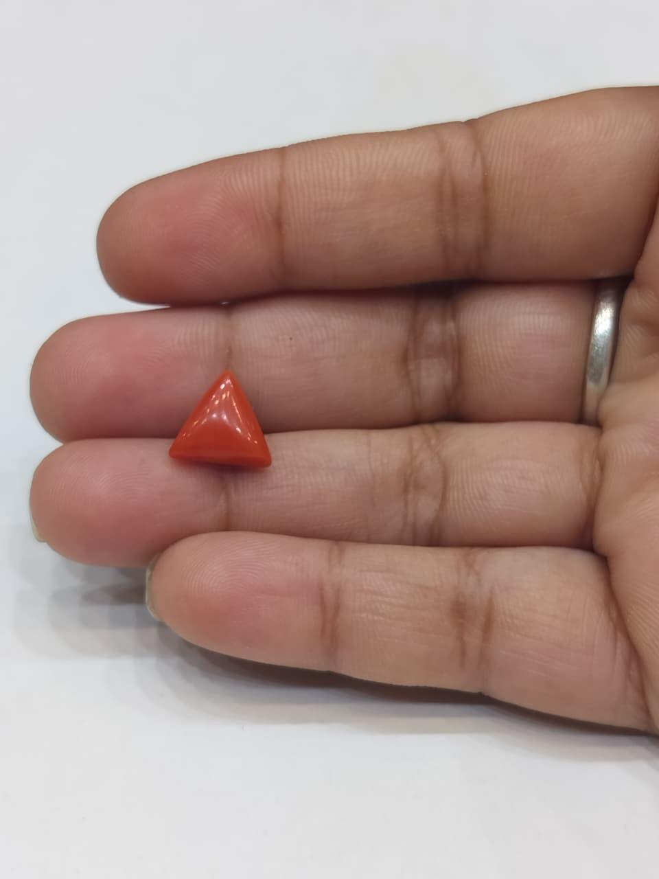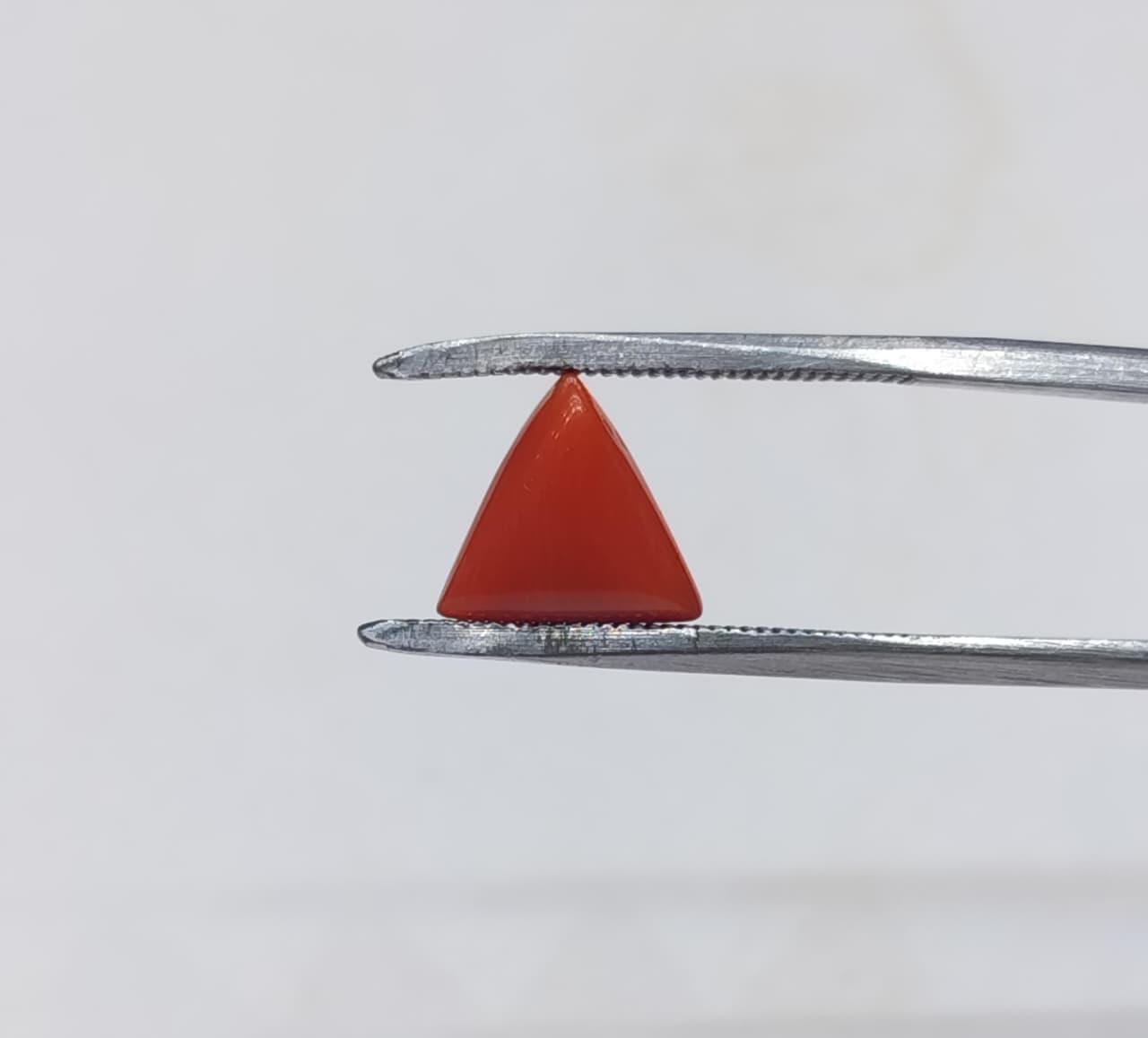 Natural Coral Stone Weight 3.55 Carat Triangle Shape.
