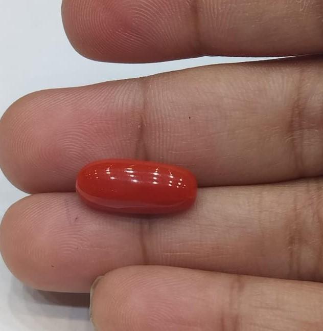 Natural Coral Stone Weight 5.07 Carat Oval Shape.