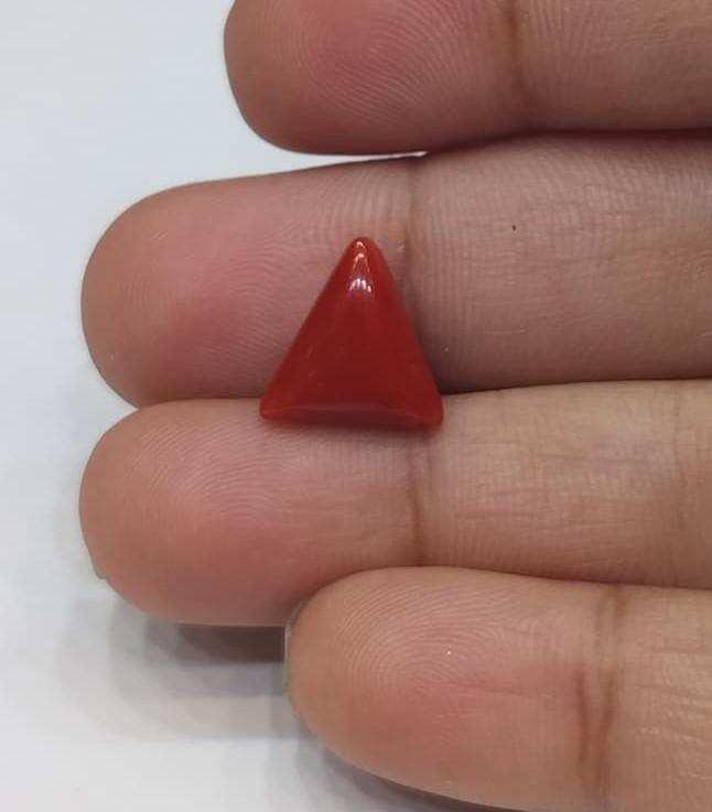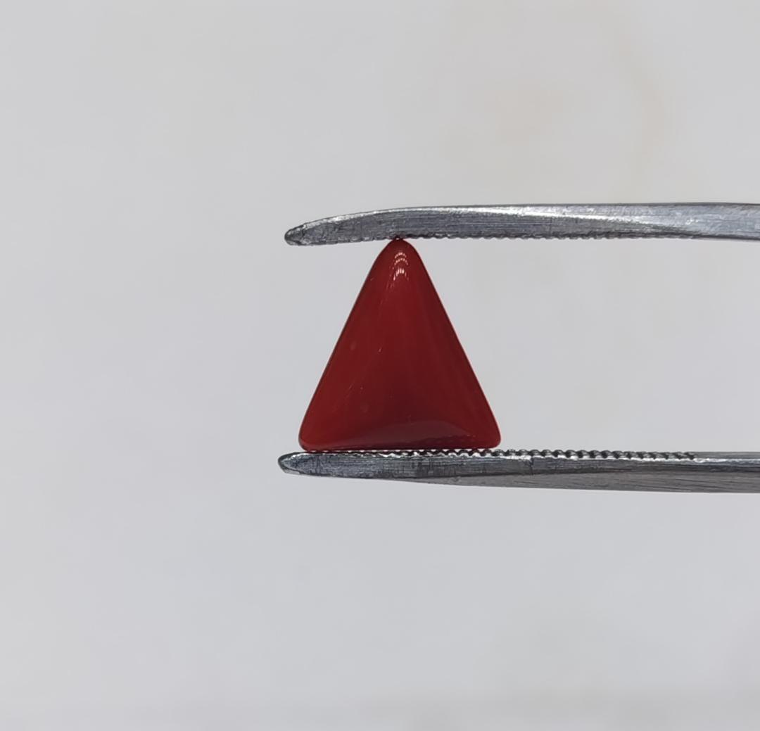 Natural Coral Stone Weight 3.39 Carat triangleShape.