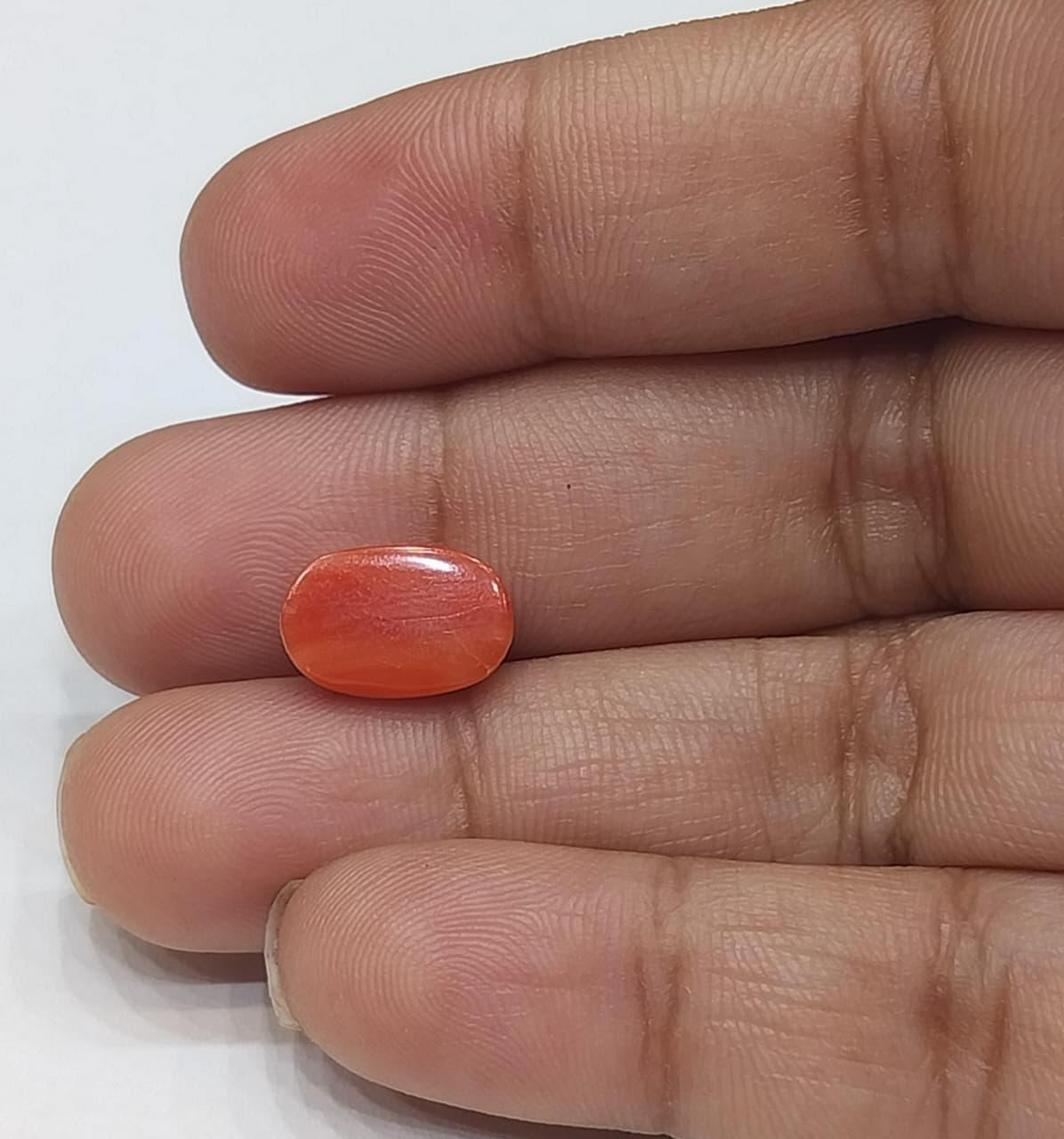 Natural Coral Stone Weight 3.27 Carat Oval Shape.