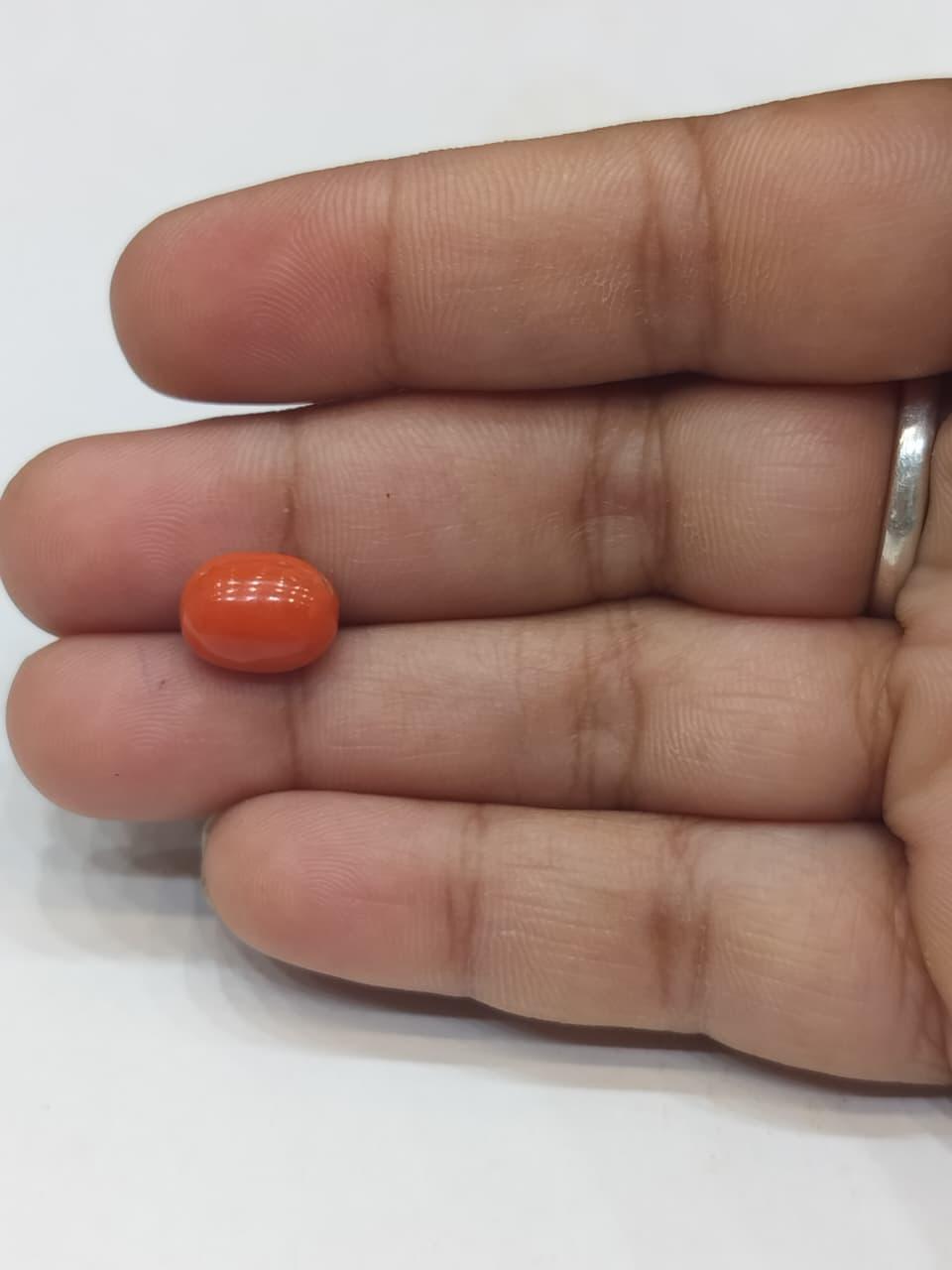Natural Coral Stone Weight 3.94 Carat Oval Shape.
