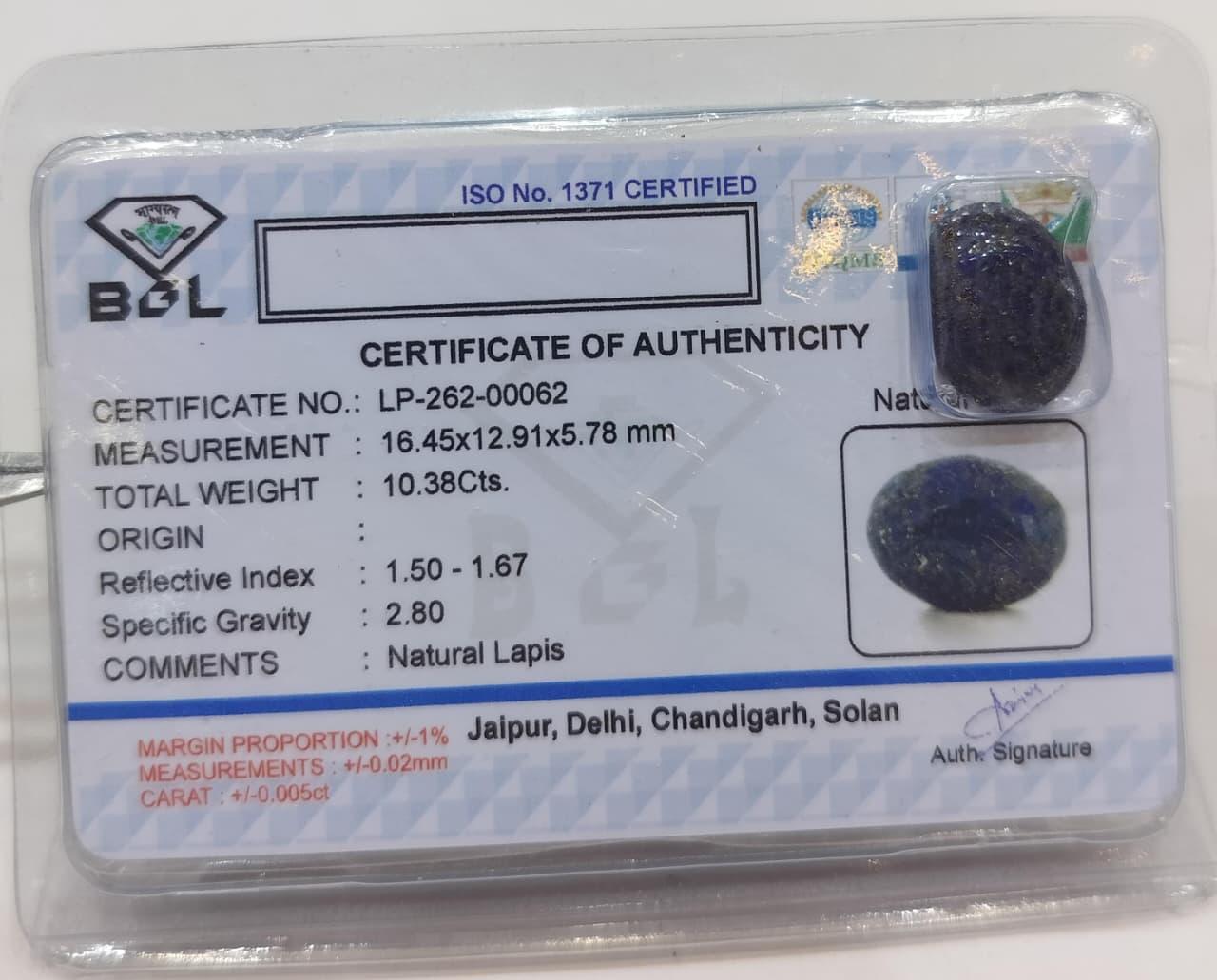 Lapis 10.38 Carat