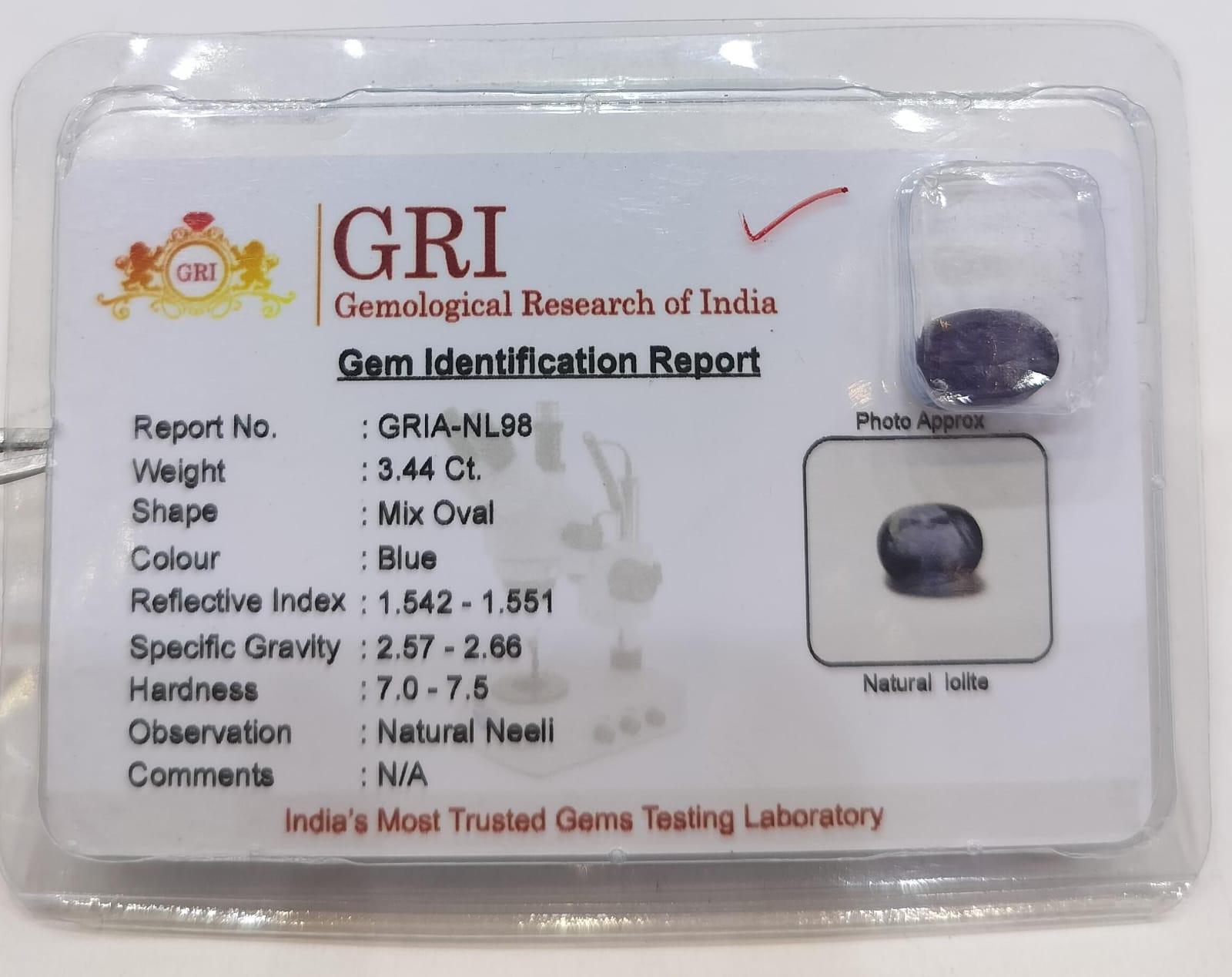 Natural Neeli Stone Weight 3.44 Carat Oval Shape.